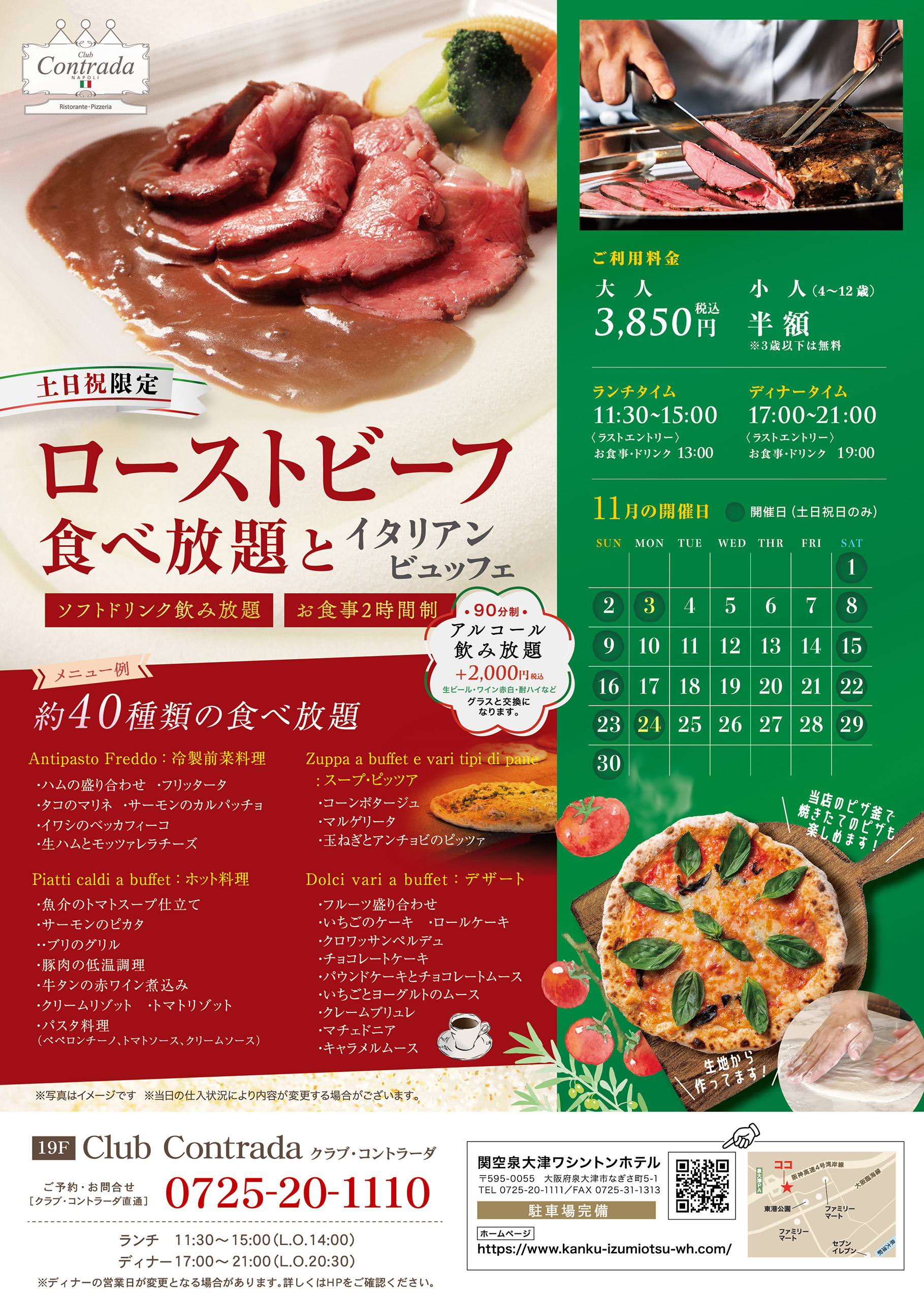 Club Contrada 【土日祝限定】ローストビーフ食べ放題とイタリアンビュッフェ