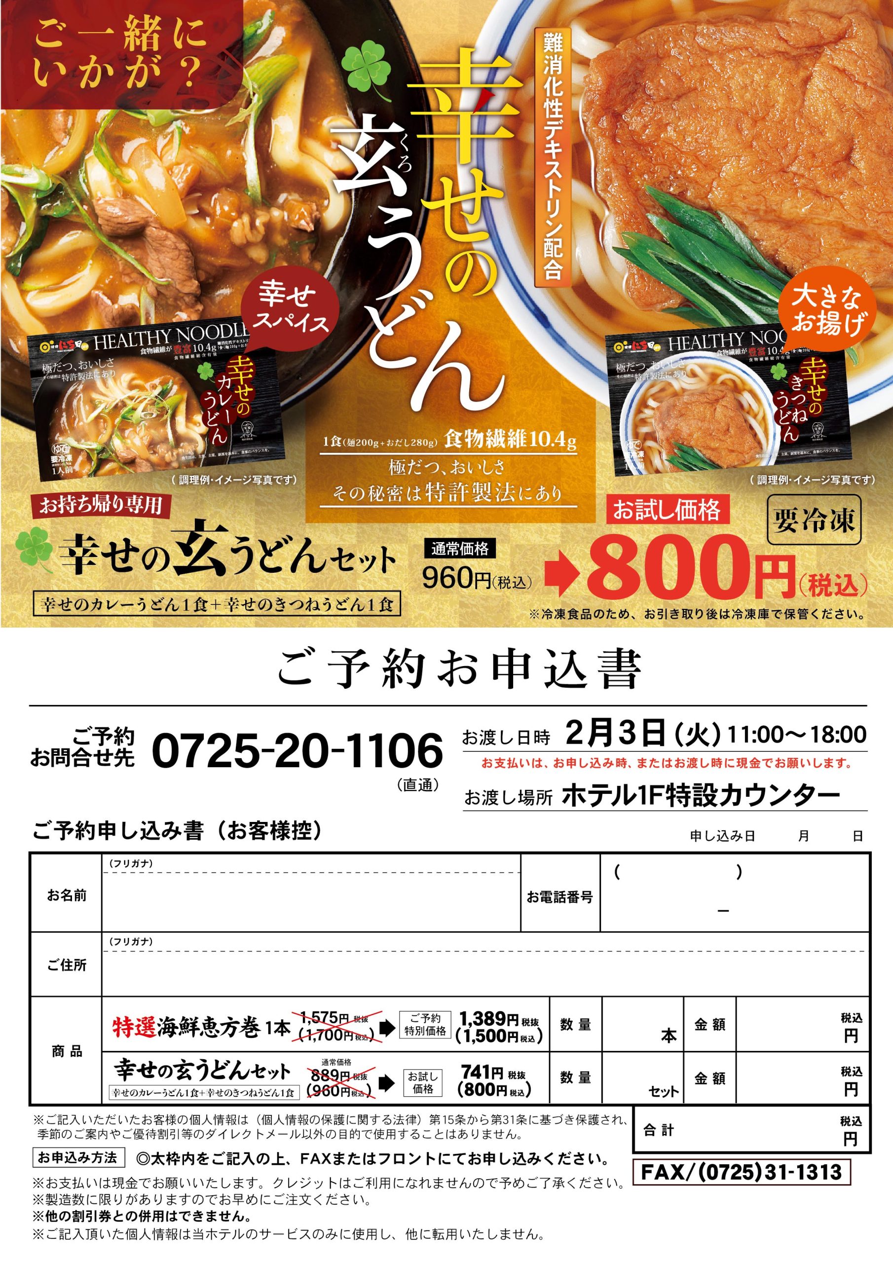 2月3日(火)11時〜18時迄 ホテル1F特設カウンターにてお渡しいたします。