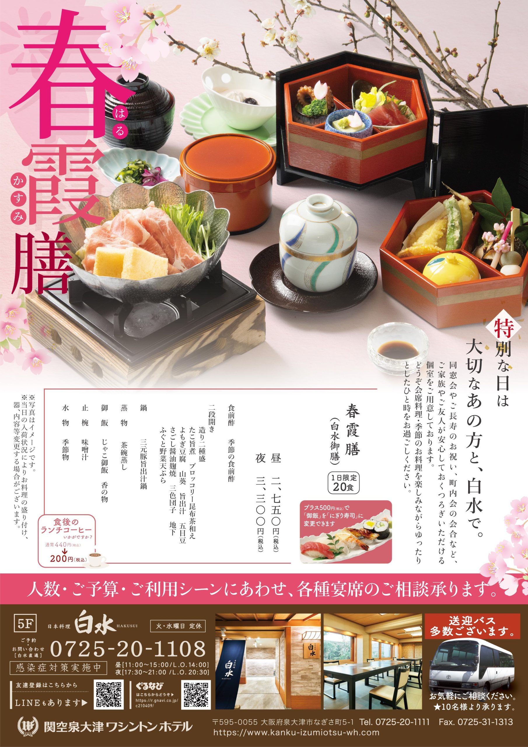 毎週金曜日はレディースデーとして、『春霞御膳』をご予約されたお客様に≪食後のお飲物≫をサービスいたします!